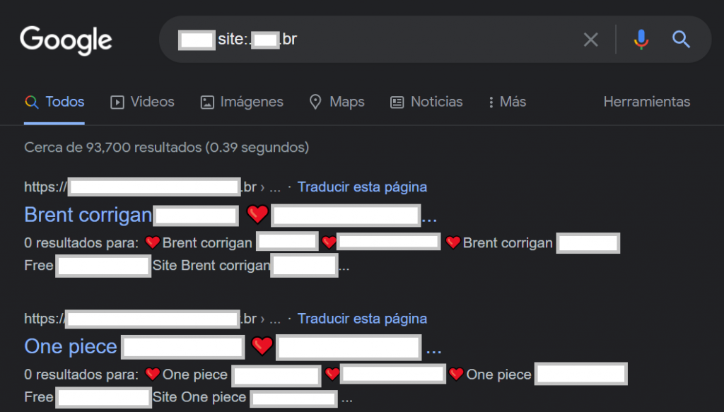 Se pueden manipular las páginas de resultados de búsqueda de sitios web en buscadores, utilizando ciertos keywords que hacen parecer que existe contenido inexistente, dentro del sitio web. Esta manipulación se realiza a través de un SPAM de búsquedas internas y/o SEO (Search Engine Optimization) negativo en el sitio web de la víctima, llevadas a cabo por bots maliciosos.