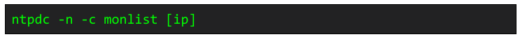 El comando de monitor NTP es una consulta de Modo 7 para MON_GETLIST_1. Para probar manualmente si un sistema es vulnerable a esto, puede usar el comando: