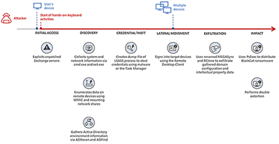 Microsoft ha reportado el ransomware denominado BlackCat, este permitiría a un atacante robar datos de usuario, como credenciales y filtrar la información a través de la explotación de múltiples vulnerabilidades de Exchange.